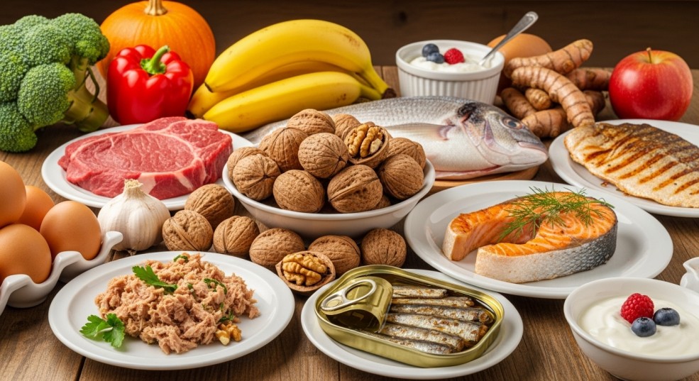 Ikan berlemak membekalkan omega-3 semula jadi yang menyokong fungsi saraf dan kejelasan minda. Walnut pula kaya dengan lemak sihat dan antioksidan yang menyokong kesihatan otak.