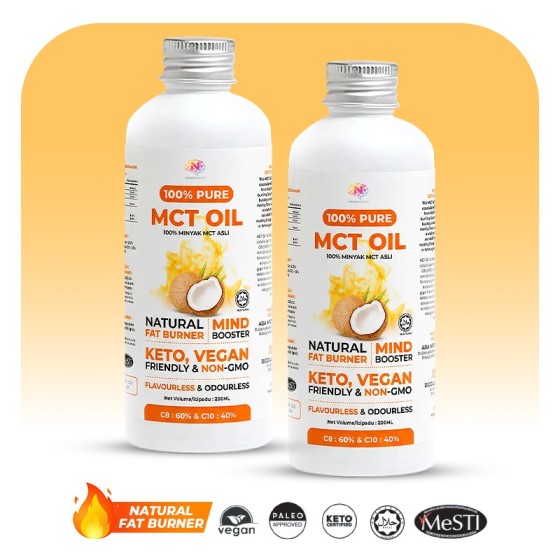2 Botol MCT Oil. Setiap Botol MCT Oil mengandungi 200ML.